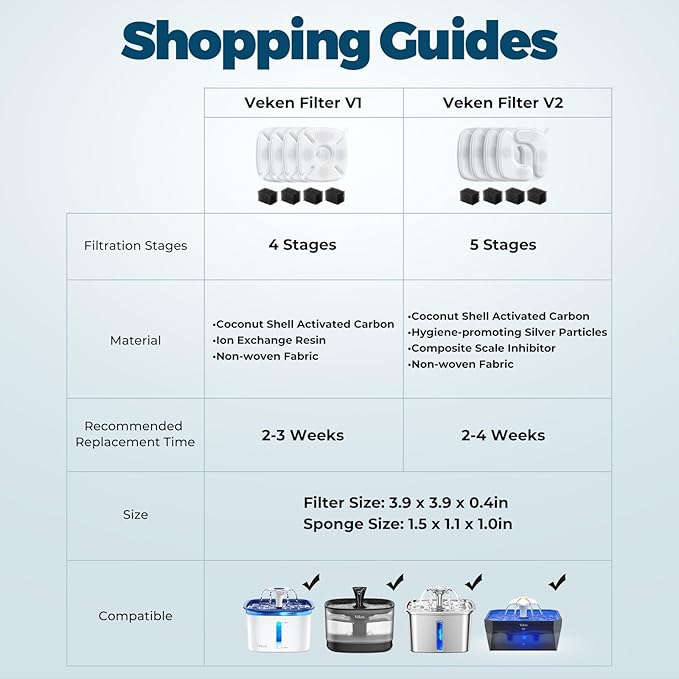 - 【Perfect Match】Compatible with Veken 50oz, 84oz, 95oz Pet Fountain. (Filter size: 3.9 x 3.9 x 0.4in | Sponge size: 1.5 x 1.1 x 1.0in)