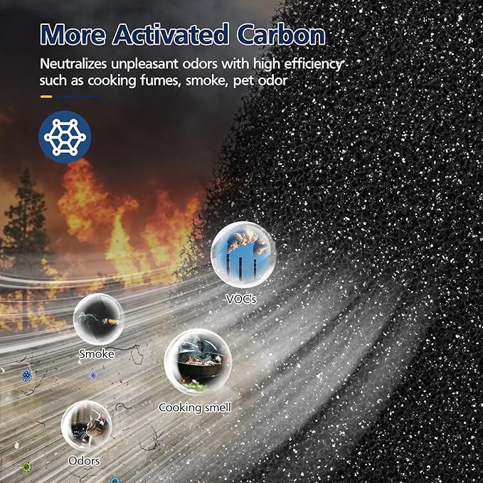 - 𝟑-𝐒𝐭𝐚𝐠𝐞 𝐇𝐢𝐠𝐡 𝐄𝐟𝐟𝐢𝐜𝐢𝐞𝐧𝐜𝐲 𝐅𝐢𝐥𝐭𝐫𝐚𝐭𝐢𝐨𝐧 - The HAP602 filter features the advanced 3-stage filtration system, including a pre-filter for large particles, a HEPA filter to attach microscopic particles, and an activated carbon filter that neutralizes odors, providing you with cleaner, fresher air