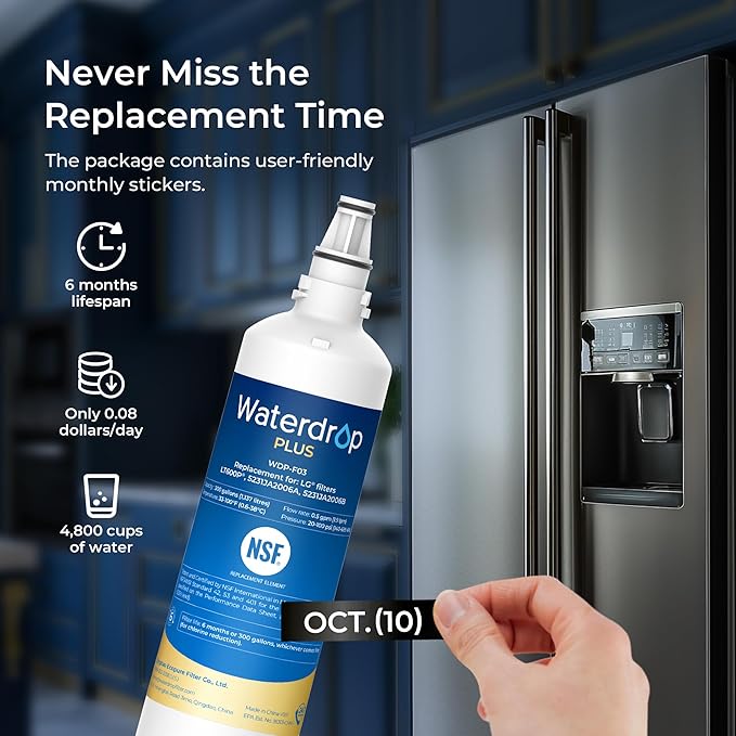 Waterdrop Plus 5231JA2006A NSF 401&53 Certified, Replacement for LG® LT600P®, KENMORE® 9990, 46-9990, WFC2001, LFX25960ST, rwf1000a Refrigerator Water Filter, 3 Filters(Package May Vary)