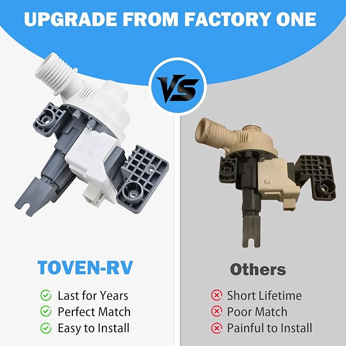 - BUY WITH CONFIDENCE - TOVEN-RV W10876600 W10727777 Washer Drain Pump comes with 1-Year Warranty, if you have any questions about our products or service, please don't hesitate to contact us for refund or replacement, and we will be glad to help!