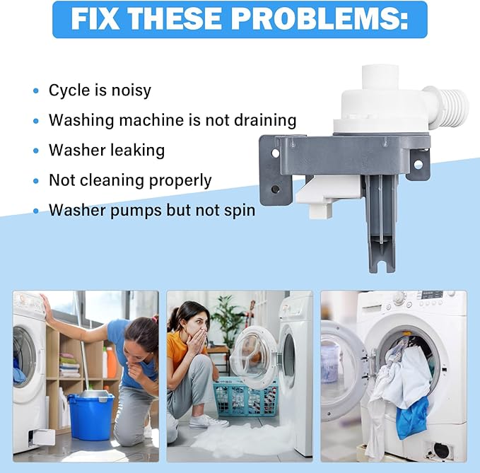 - UPGRADED WASHER DRAIN PUMP ASSEMBLY - W10876600 washer drain pump is designed to remove the water from the washer during the drain portion of the cycle. Order and replace a new whirlpool drain pump assembly from TOVEN-RV, help you to fix the common problems of your washer such as "Cycle is noisy; Washing machine is not draining; Washer Leaking; Not cleaning properly; Washer pumps but not spin, etc,.