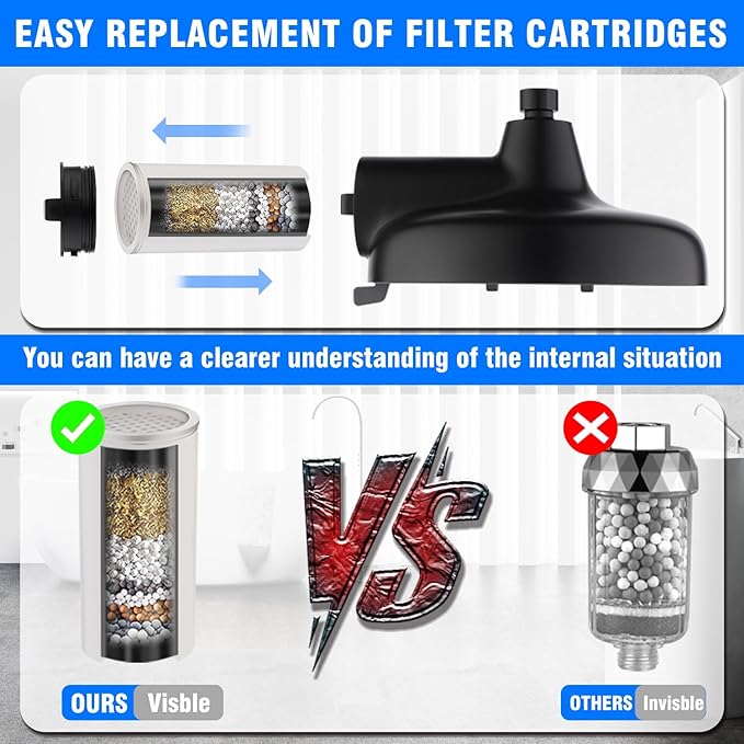 - DURABLE STYLISH DESIGN: Crafted from high-quality materials, this filtered shower head combines durability with a sleek, modern design that enhances the look of your bathroom while providing long-lasting performance.
