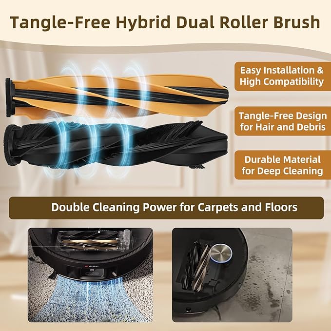 - Flexible Side Brushes for Comprehensive Cleaning: The high-toughness side brushes easily reach corners and edges of walls and furniture, ensuring thorough coverage without missing any spots.