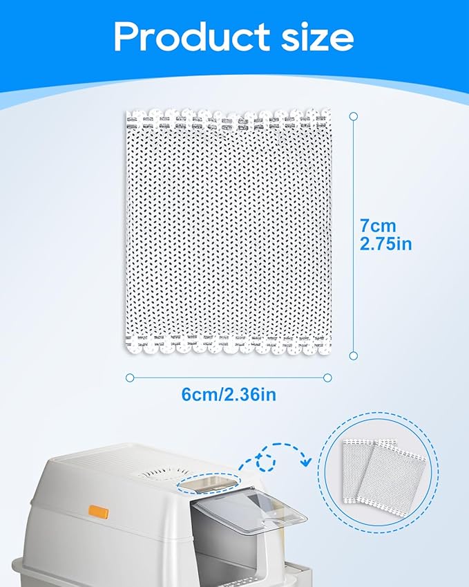 - High-Quality Activated Carbon: Coconut shell activated carbon with an iodine value of 800 offers strong deodorizing ability. The porous structure of litter box filter provides a large adsorption surface area, effectively removing odors