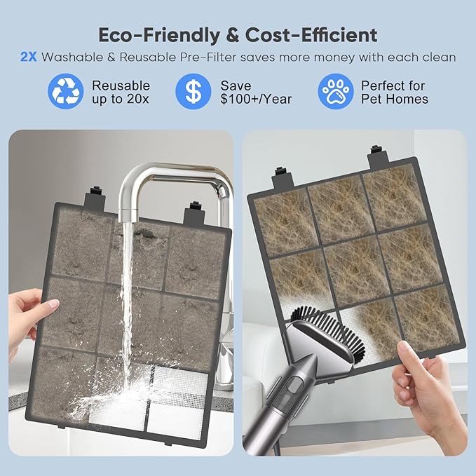 - 【PROLONG FILTER LIFE AND LOWER REPLACEMENT COSTS】First Line of Defense: The removable and washable fine-mesh pre-filter effectively captures pet hair, dander, fibers, and larger debris, significantly reducing the frequency of replacing the True HEPA14 filter. Simple Cleaning: Just wash or vacuum the pre-filter to save over $30 per cleaning and prolong the life of your main filter.Healthy Home: DAYETTE air purifier ensures fresh, clean air while keeping your filter replacement costs low