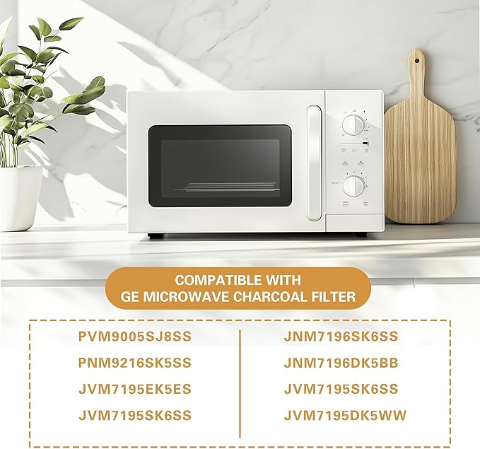 - Fits for GE Models: This microwave charcoal filter is designed for GE models JVM7195SK6SS, JVM7195EK6ES, JNM7196SK6SS, JNM7196DK5BB, JVM7195DK5WW, JVM7195EK5ES, PNM9216SK5SS, PVM9005SJ8SS. Guaranteed to work perfectly and efficiently.