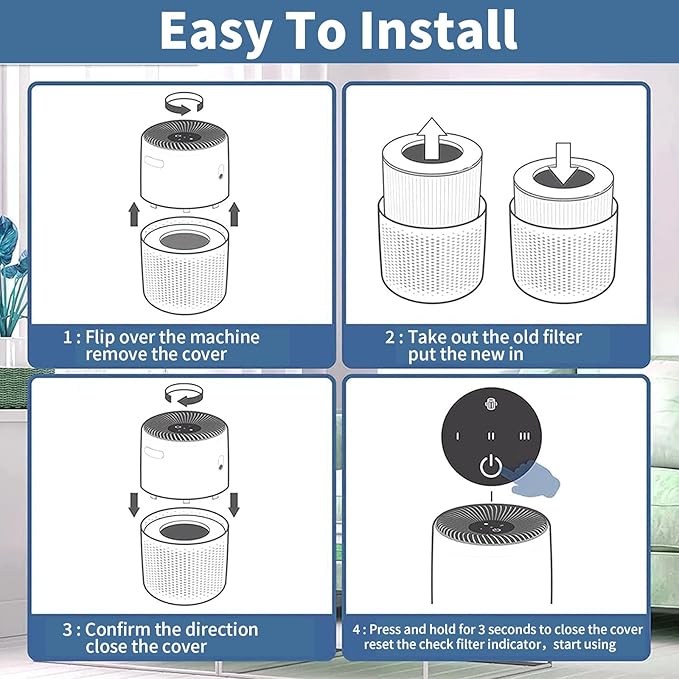 - EASY to INSTALL: The air purifier filters are easy to replace and dispose of without any tools. We recommend recommend cleaning the filter every 2-4 months and replacing it every 4-6 months, depending on the environment and frequency of use, to maintain optimal performance of the air purifier