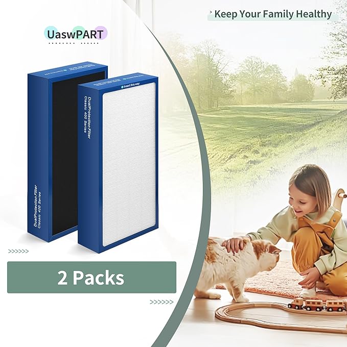 [Upgraded] Uaswpart Classic 400 Series Dualprotection Filter Compatible with Blueair Classic 400 Series Air Purifier Filter for Models 402 403 405 410 450E 455EB 480i, 2 Packs