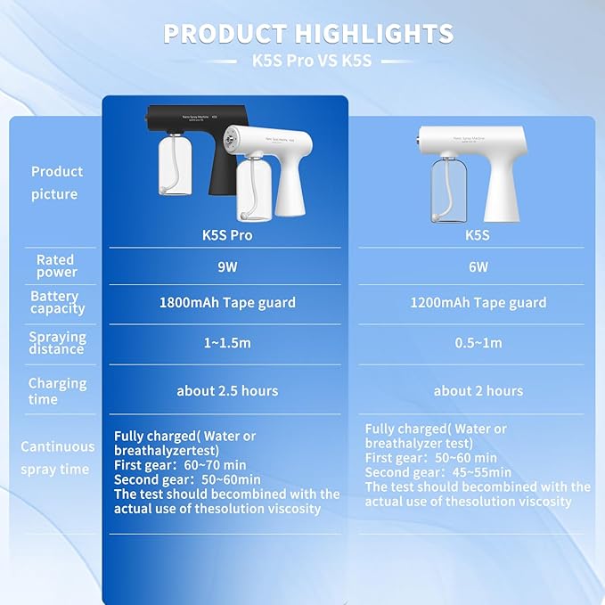 Handheld Rechargeable ULV Nano Mist Mister with Blue Light Electrostatic Technology, Portable Barbershop Humidifier for Hair Salons, Home, Office & Car Wireless Atomizer for Air Refresh(K5SPro Black)