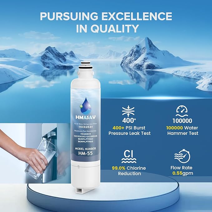 - 【Premium Material】HMASAV 11032531 water filter is using BPA-free food grade materials and high-quality activated carbon, it effectively eliminates 99% of the flavor and odor of lead and chlorine and retains the essential minerals, allowing you to always enjoy clean, fresh drinking water