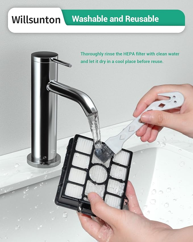 - Washable and reusable: Rinse the HEPA filter thoroughly with clean water. For optimal performance, we recommend replacing the filter set every 2-3 months to help extend the life of the vacuum cleaner.