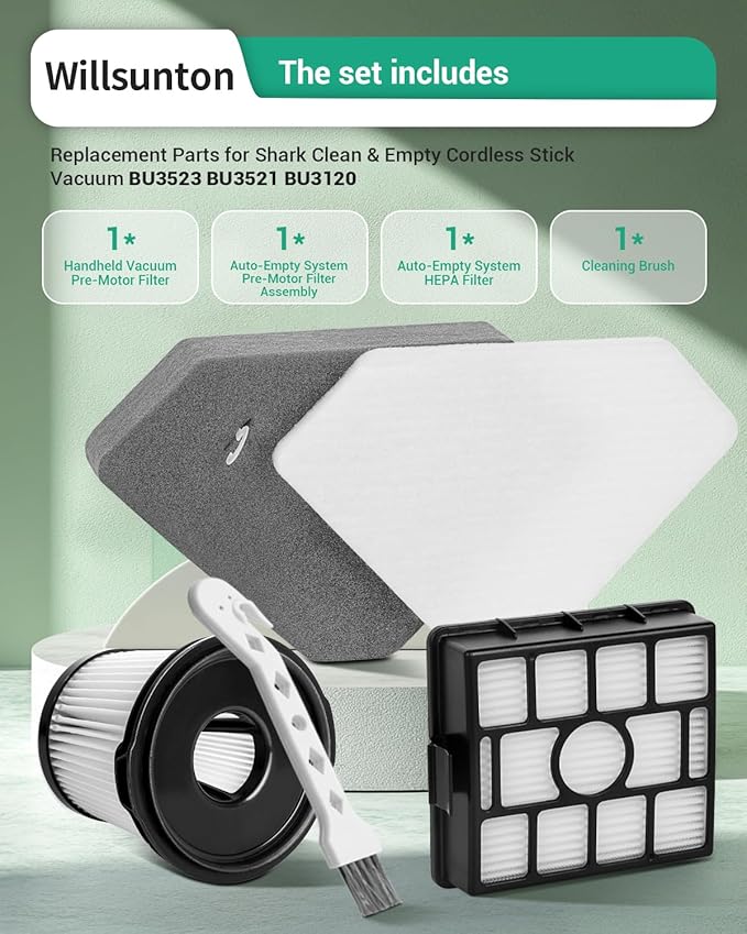 BU3523 BU3521 BU3120 HEPA Filter Replacement for Shark BU3523 Clean Lightweight Cordless Stick Cleaner, for Shark BU3521 Clean and Empty Cordless Stick Vacuum, Auto Empty System