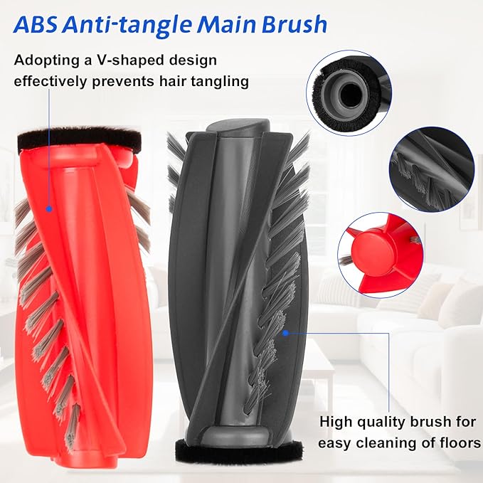 - Main Brush & Side Brush: The main brush is made of high-quality ABS rubber, which is durable and wear-resistant. It can remove various dirt and pet hair from the floor, preventing hair tangling. Side brushes can penetrate deep into corners and edges to prevent dust from accumulating in dead corners