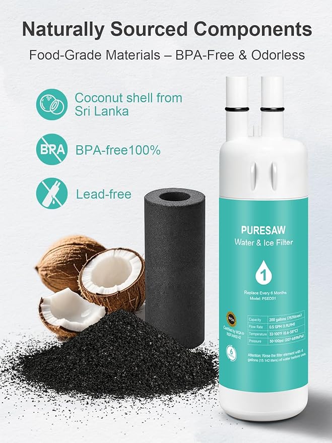 - Premium BPA-Free Water Filtration: Made with food-grade materials and certified to NSF/ANSI 42 & 372 safety standards, this filter installs in seconds with a simple twist-and-lock mechanism (just flush 4G first) and delivers fresh, clean water for 6 months or 200 gallons before replacement
