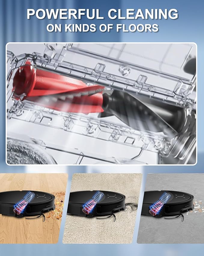 - 【POWERFUL CLEANING BRUSHES】 The Zero-Tangling DuoDivide Main Brush and FlexiArm Riser Side Brush effortlessly removes dirt, hair, and debris from all floor types, including hardwood, tile, and carpets. ensuring no hair tangles, even with long hair or pet fur