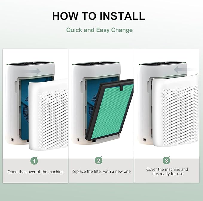 - Install No Tools Needed: Perfectly compatible with MK-D05 air cleaner, our filter is easy to install and replace. Simply open the protective shell of the machine, grab the string on the side to pull out the old filter, then install a new filter