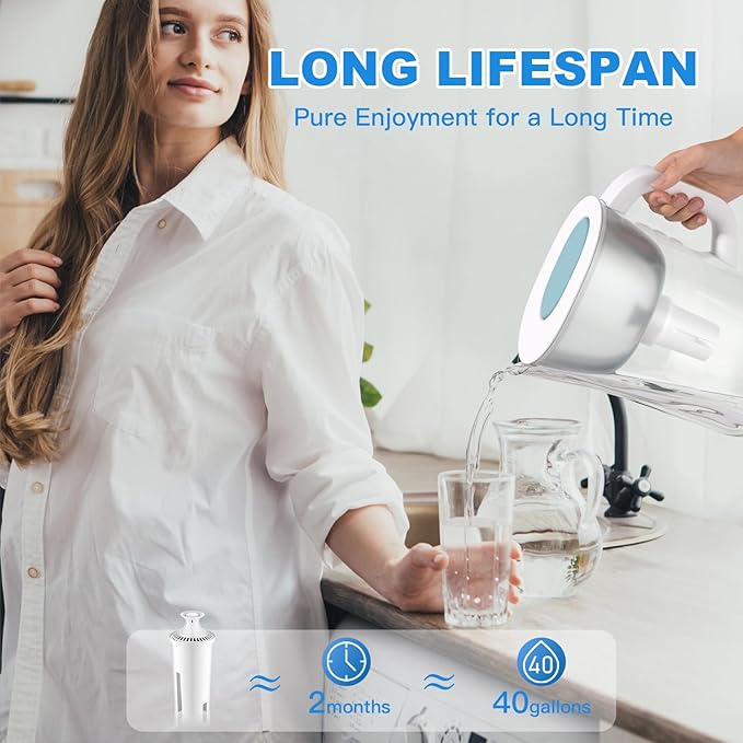 - Long Life: Our water filter provide you with great tasting pure water that is always fresh and delicious and reduces plastic waste, 1 filter can filter up to 40 gallons of water and can last up to 2 months, but may vary depending on local water conditions