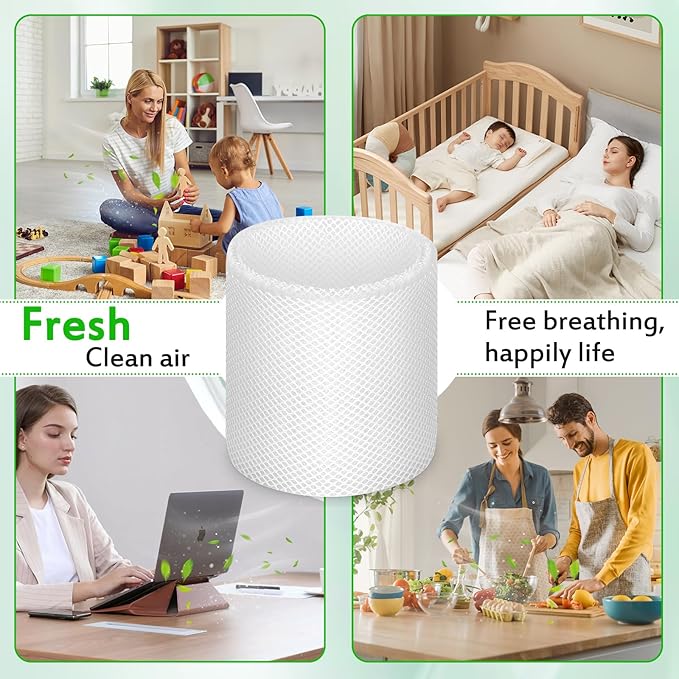 - 2.Product Performance:AW200 material all mesh and 3D core material production, set this humidifier replacement filter can effectively filter out particles, animal dander, hair, etc., for a healthier living environment to provide a fresh mist to help us improve the dry air environment, which promotes the optimal level of humidity in your home, so that the skin and the body is in a more comfortable state.