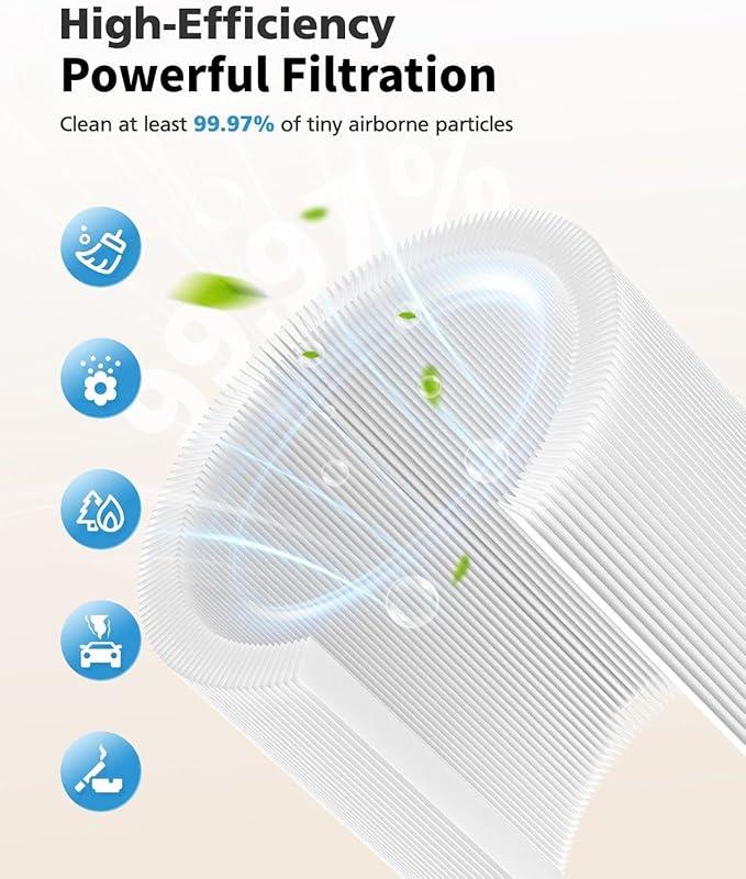 - 【Efficient 3-Layer Filtration】C610 replacement filters are designed with 3 layers of filters: Pre-Filter + HEPA Filter + Activate Carbon Filter. Effectively cleans 99.97% of pollen, fine dust, VOCs, smoke and other impurities as small as 0.3 microns in the air, allowing your air purifier to perform at its peak