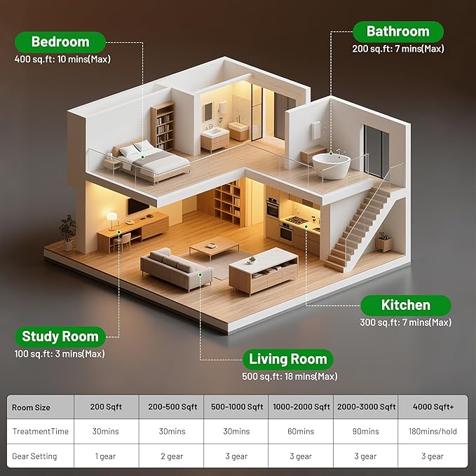 - ππππππππ π-πππππ πππππ ππππππππππ-Our ozone generator offers three output modesβ30,000mg/h (Low), 60,000mg/h (Medium), and 90,000mg/h (High). Customize the settings based on space size and needs to prevent lingering odors caused by excessive ozone levels.