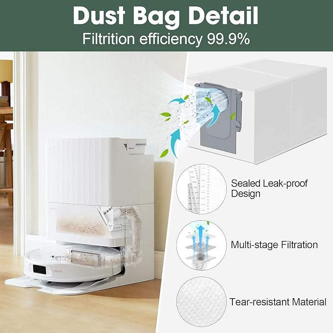 - 【Leak-Proof Dust Bags】: Our sealed-edge design locks in the finest dust and pet hair. No more messy dirt or particles when you empty the bin. Multi-stage filtration keeping your space dust-free and make your body healthier