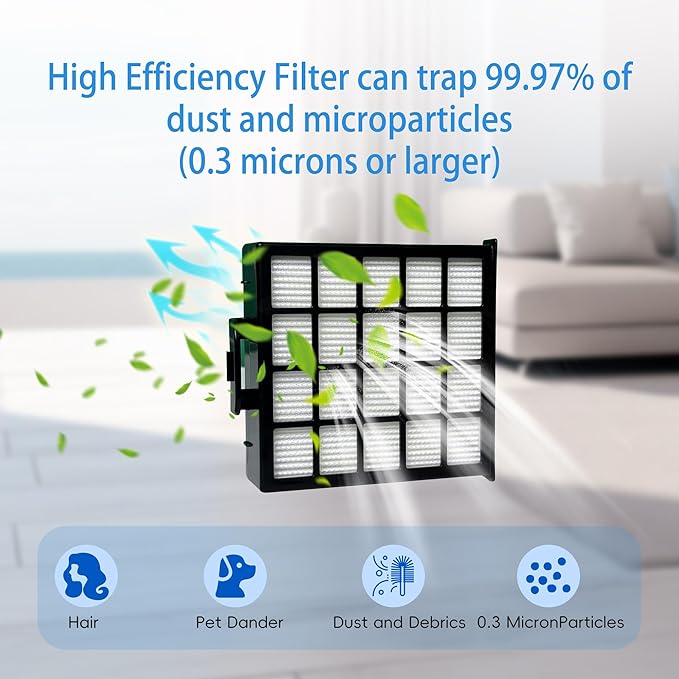 - 【Enhanced Cleaning Performance】 ✔ HEPA filter traps 99.97% of dust and microparticles (0.3 microns or larger) for cleaner air. ✔ High-quality roller brush lifts deep debris from carpets and hard floors, while foam & felt filters protect the motor from dust buildup.