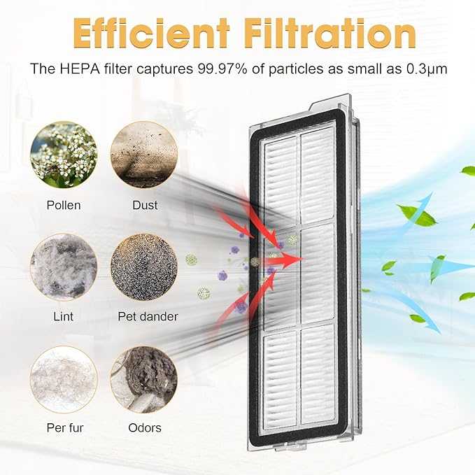 - 【HEPA Filters & Premium Mop Pads】: The microfiber mop cloth for Roborock Qrevo S5V delivers exceptional absorbency and effortless stain removal, effectively eliminating footprints and dust from hard surfaces. The washable filter maintains peak vacuum performance with its airtight seal design that prevents suction loss, while being reusable for extended durability.