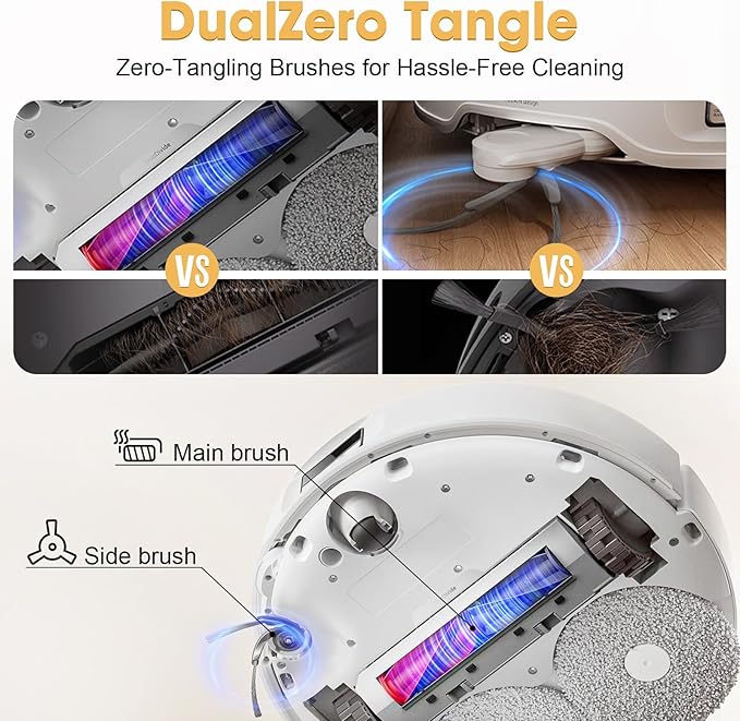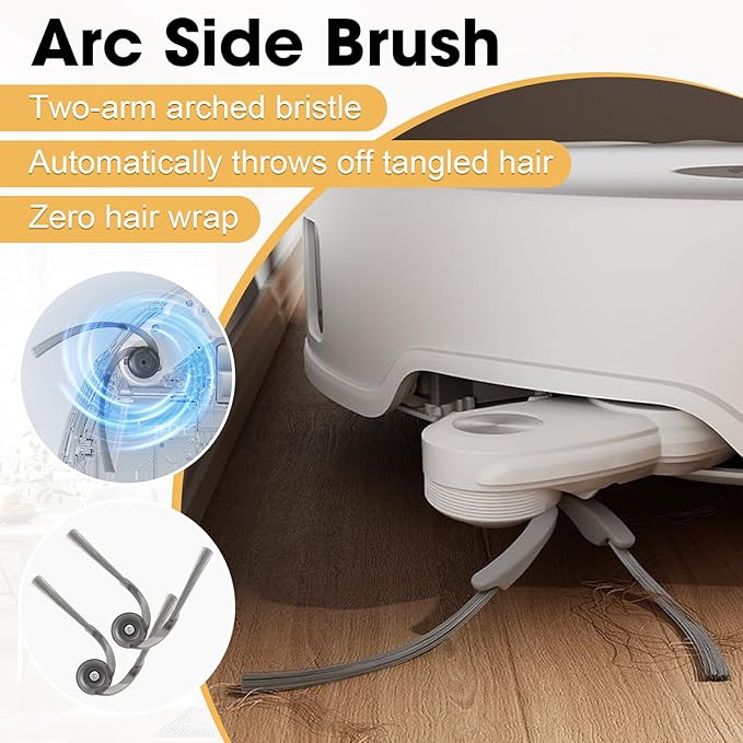 - 【High-Strength Side Brush & Main Brush】: PC material Edge S5A side brush effectively cleans corners while protecting baseboards. The main brush is made of high quality rubber material and multi-faceted serrated bristles, soft and wear-resistant, which can deeply clean the floor without causing damage to the floor, and it can easily adsorb hairs to avoid tangling troubles, optimized for Qrevo Curv vacuum.