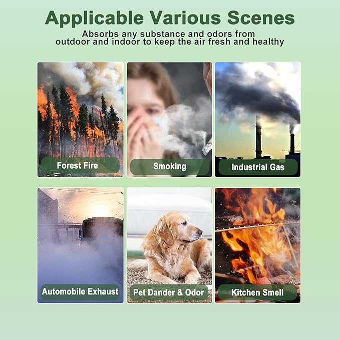 - 🌿 2-in-1 Particle + Carbon Defense: Dual-layer design: HEPA traps airborne particles while activated coconut carbon absorbs cooking odors, pet scents, and VOCs. Breathe deeply in kitchens, dorms, or small apartments (up to 161 sq ft).