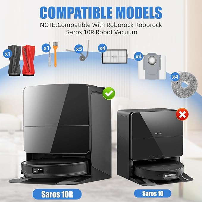 - Compatible Models:These replacement parts are compatible with Roborock Saros10R robot vacuum.Please confirm your model before purchase