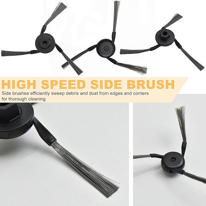 - [Set includes]: 4 Rubber Main Brush+ 6 Filters+ 6 Dust Bags+8 Mop Pads+6 Side Brushes