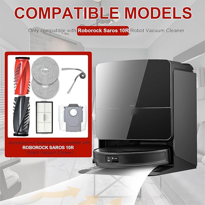 - [Product Compatibility]:Accessory Kit Compatible with Roborock Saros 10R Robotic Vacuum Cleaners, please confirm your robot model before purchase.