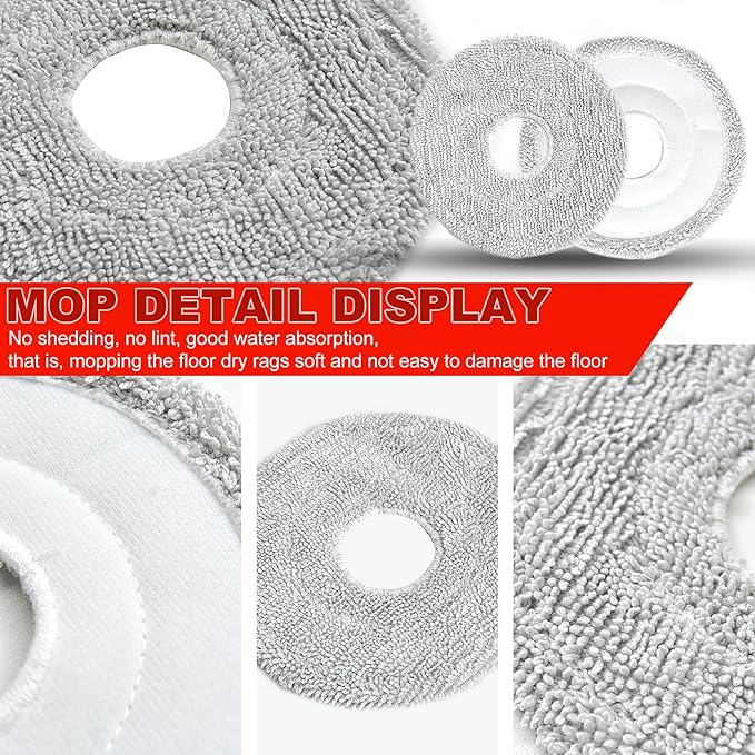 - [Product Set includes]: 4 Rubber Main Brush+ 6 Filters+ 6 Dust Bags+8 Mop Pads+6 Side Brushes