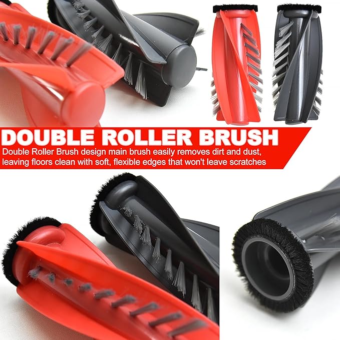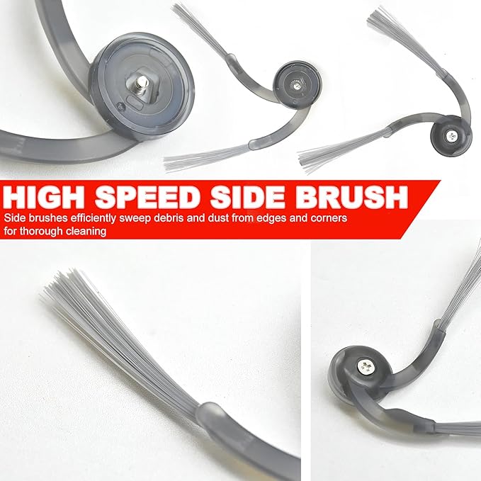 - [Product Set includes]: 4 Rubber Main Brush+ 6 Filters+6 Dust Bags+6 Mop Pads+6 Side Brushes +2 Edge-hugging mop pad