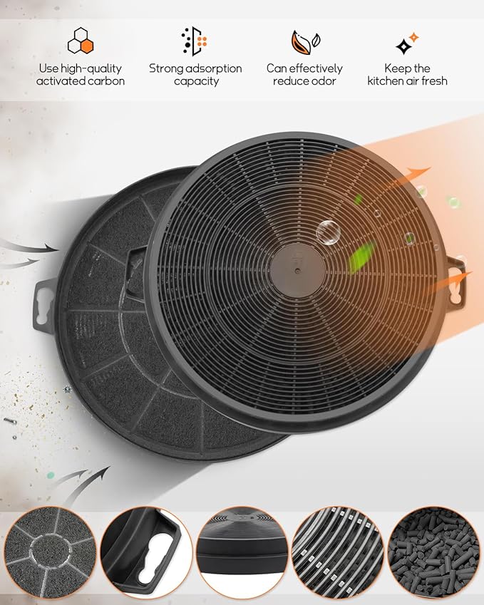 - Easy Installation: Our activated carbon filter is very easy to install and you can easily install, remove and clean it yourself. Just position the motor correctly and align the filter, twist and lock the filter. It is recommended to replace the filter every three months or according to usage