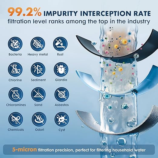 - 【Top-Tier KDF+GAC Heavy Metal Removal Series】Up to 99% efficient filtration that delivers 3-stage purification. Specially designed for removing lead, arsenic, chromium, chlorine, iron and other heavy metals. Effectively adsorb organic compounds in water, reduce scaling, peculiar smell, sand, rust, sediment. Soften water quality and improve taste. Suit for municipal/spring/well water. Extend life of faucet/washing machines/water dispenser/pipes, and avoid costly repairs.