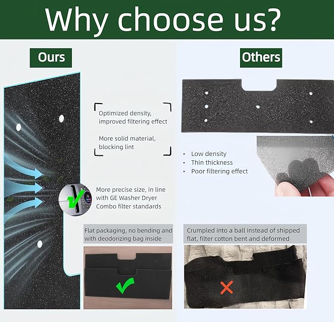 - Wash & Reuse – Made of durable foam, These filters for your GE washer dryer combo survive rigorous hand-washing. No more buying replacements every month – just rinse, dry, and reuse!