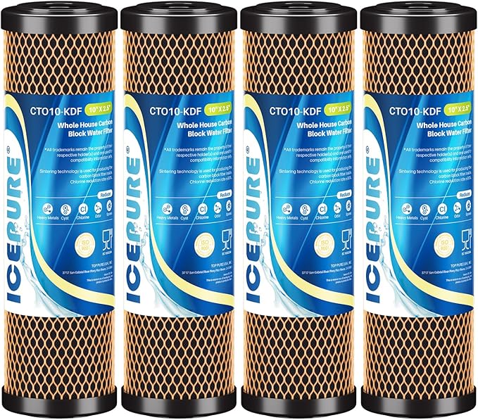 ICEPURE 1 Micron 2.5" x 10" Whole House Water Filter Coconut Shell Activated CTO Carbon and KDF Cartridge for Home, Compatible with WFPFC8002, WFPFC9001, FXWTC, SCWH-5, WHEF-WHWC, AMZN-SCWH-5, 4PACK
