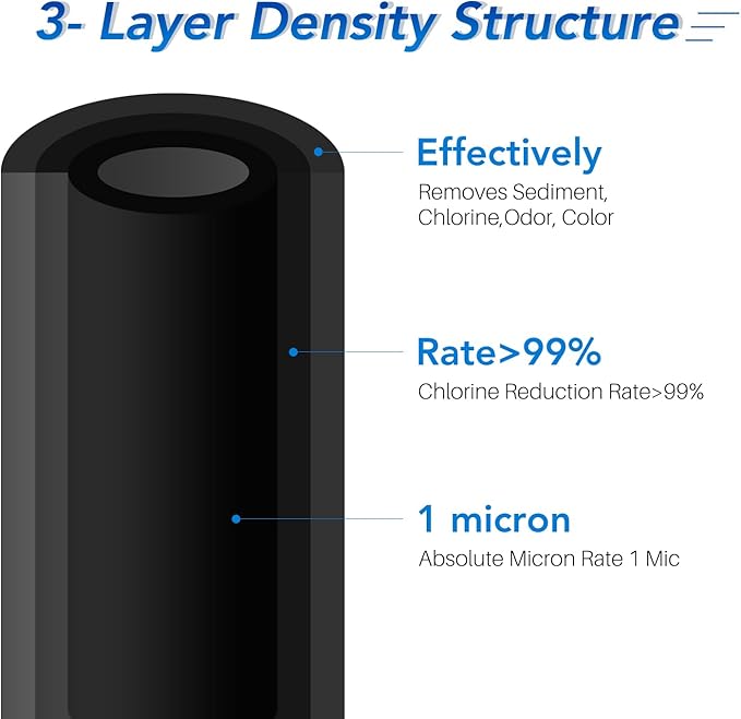 - Authoritative Certification - This 20" x 4.5" whole house water filter has passed the international authoritative certification of NSF/ANSI 42, complies with international water standards, the European EC1935-2004 Regulation, the Australian Water Mark, and has obtained ROHS, REACH and BPA-free certifications. Let you and your family enjoy clean pure water.