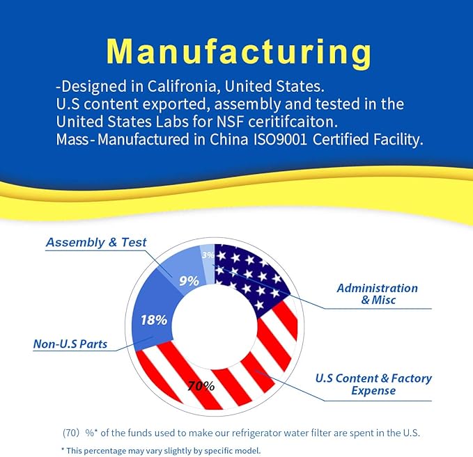 - Authoritative Certification- filters fit for Frigidaire eptwfu01 water filter replacement, it has passed the NSF/ANSI 42, NSF/ANSI/CAN 372 certifications of IAPMO, and complies with the European Food Grade Regulations EC-1935/2016, ROHS, REACH, BPA-free, TUV, and the Australian Water Mark. It can effectively reduce chlorine, taste and smell