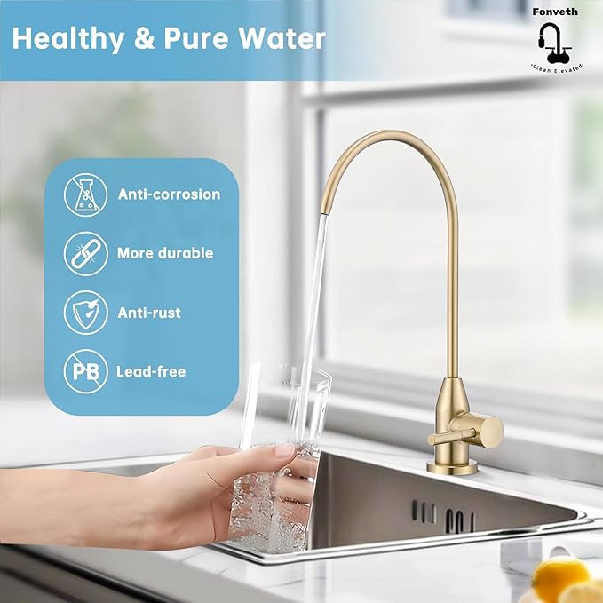 Drinking Water Faucet, Champagne Gold RO Faucet for Under Sink Water Filter System Reverse Osmosis Non-Air Gap for Kitchen