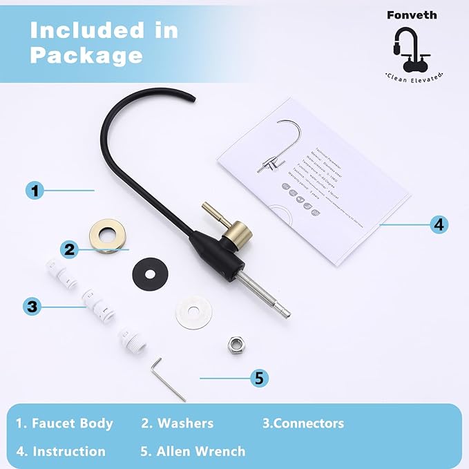 - Drinking Water Faucet Dimension: Overall height is 10.6 inch,Spout height is 8.1 inch, spout reach is 5.5 inch, fit hole diameter 0.4-1.0"