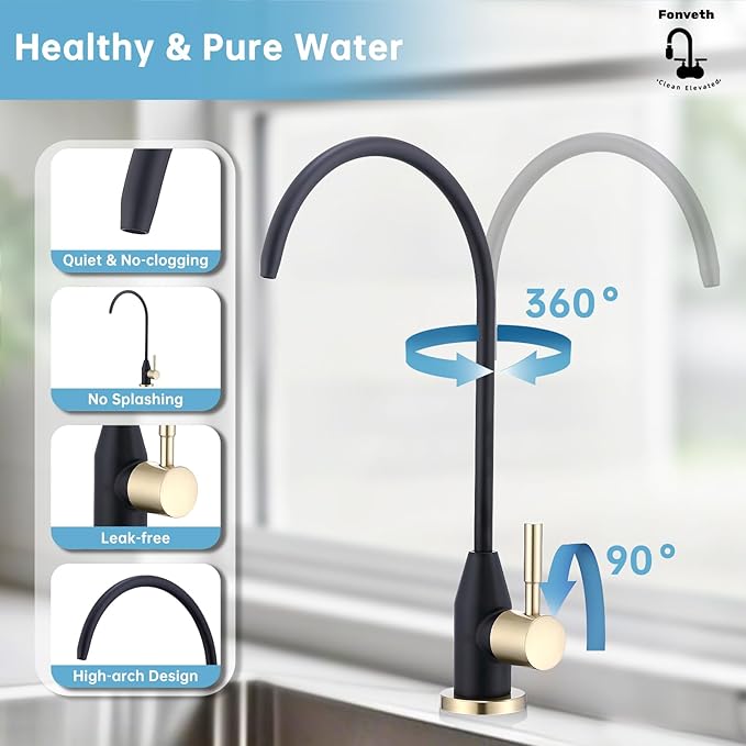 Drinking Water Faucet, Black and Gold RO Faucet Kitchen Water Filter Faucet for Non-Air Gap Reverse Osmosis Water Filtration System