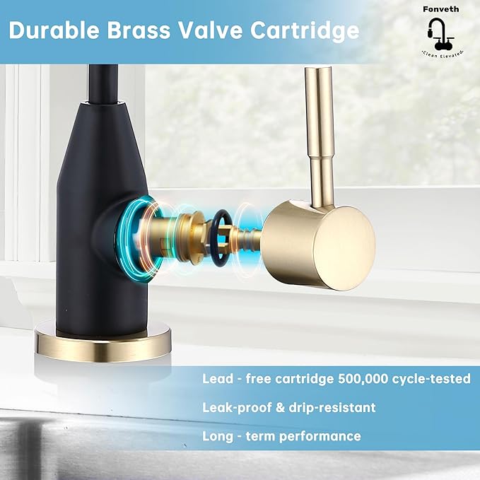 - Matte Black and Brushed Gold finish resists tarnish and corrosion