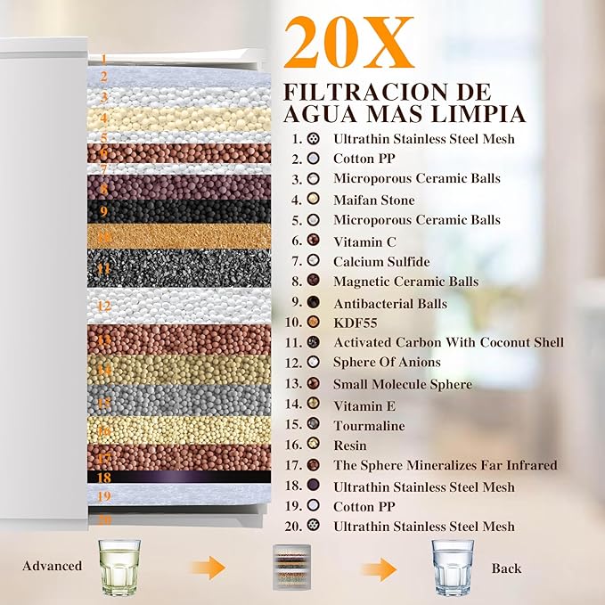 - Hard Water Solution - This shower head features a professional 20-stage shower filter that effectively removes chlorine, heavy metals, sediments, and other impurities from your water—leaving it cleaner and gentler on skin and hair. Perfect for hard water areas, it helps reduce dryness, irritation, and scale buildup.