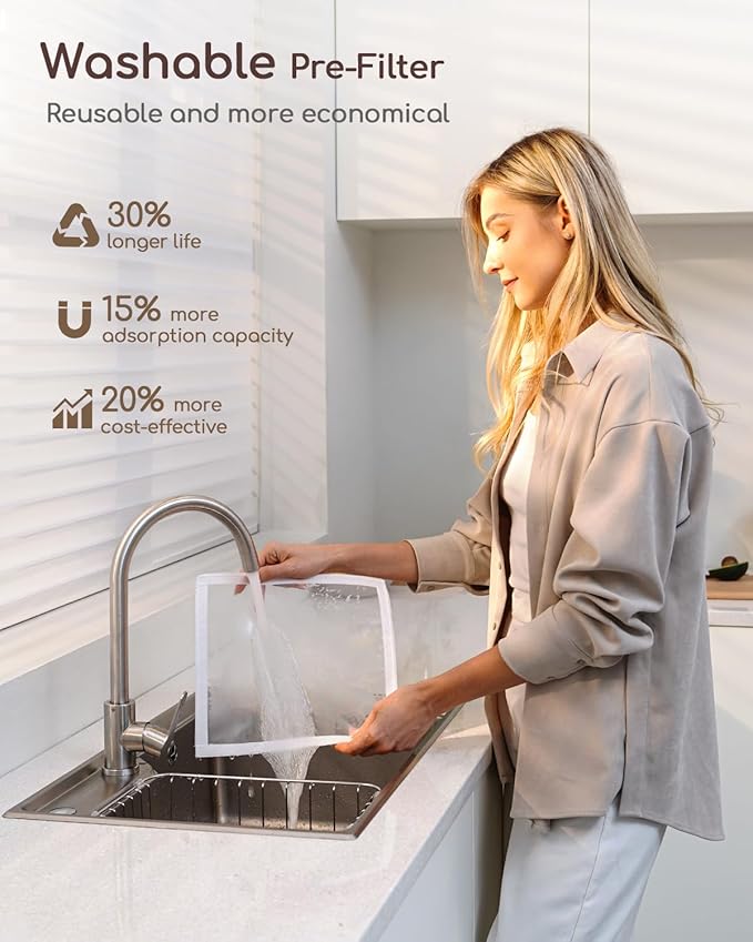 - Pet-Friendly 4-Layer Filtration:The advanced air purifier filter system traps particles as small as 0.03μm, removing 99.99% of pet dander, hair, and dust. Washable pre-filter (6-12 month lifespan) cuts replacement costs by 30%—effortlessly traps pet hair & debris, making it a top practical choice for home use.