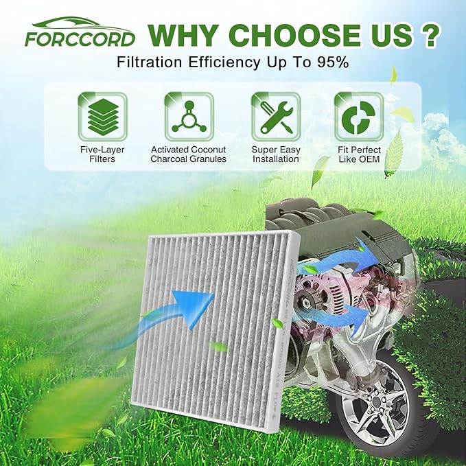 - 【5 Layers Newly Material】Compare with Standard cabin air filter, we adopts a newly upgraded large-capacity five-layer blue silk filter cloth+melt blown cloth, Double layer HEPA filter,which can remove 99.9% of harmful pollutants(dust, pollen,exhaust, etc)