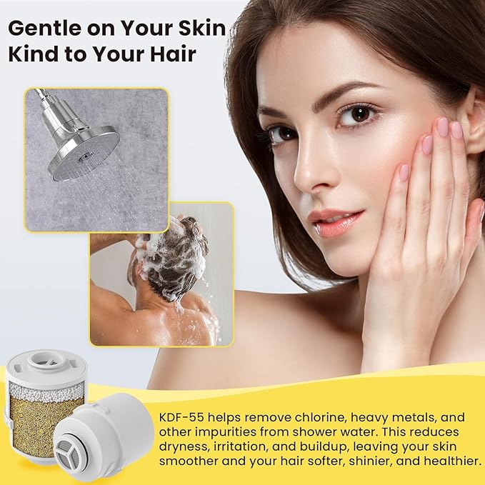 - Premium Quality Shower Filter: featuring a proprietary blend of KDF-55 and calcium sulfite, Ryamen shower filter far exceeds NSF-177 standards and lasts 2× longer than other filters. Shower water filter can effectively removes chemicals, sediments, and chlorine, purifying water for healthier hair and skin, helps reduce itchy skin, hair loss, and dryness