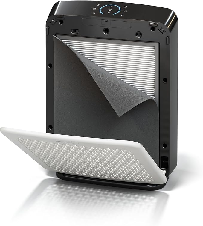 - ENERGY-EFFICIENT & COST-SAVING: Exceeds EnergyStar requirements for low power usage without sacrificing performance, features a large 13" x 16" filter designed for extended use, helping reduce replacement frequency and offering long-term value, and cleans more air with a single filter than traditional air purifiers do with multiple filters.
