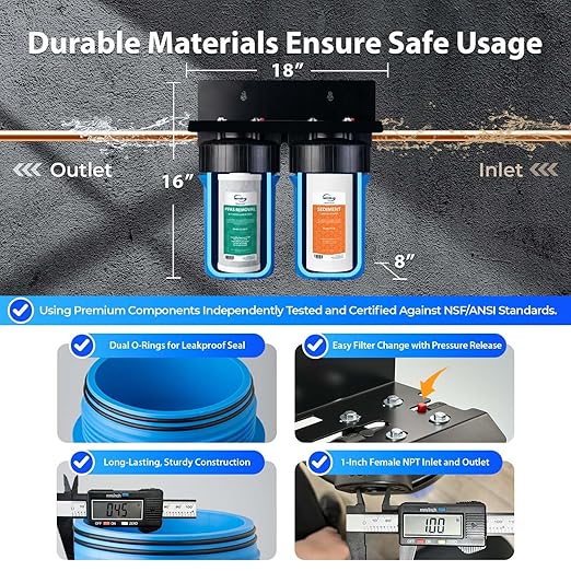 - Easy Installation & Maintenance: Featuring standard 1” NPT inlet/outlet ports, this water filter whole house system is quick to install on most household plumbing. Step-by-step guides and video instructions make setup hassle-free. Filter changes are fast and clean, ensuring your home water filter system whole house runs smoothly.